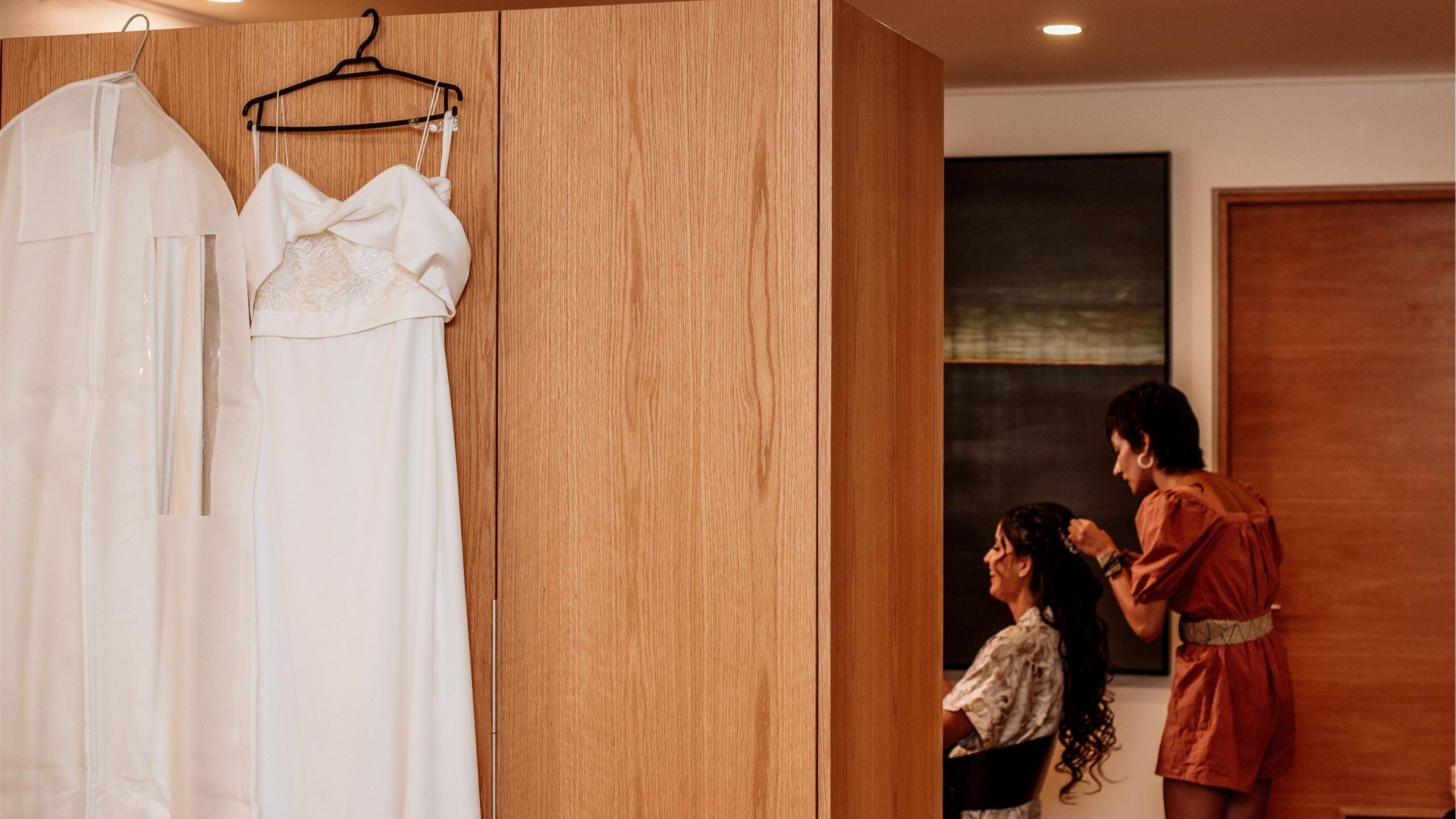 Exclusiva pieza para uso de novios o anfitriones durante el día del evento. Los invitamos a quedarse a alojar. Tiene baño, tocador y cama super king. Cuenta con una salita familiar con amplio espacio para el cuidado de niños cercanos a la familia.