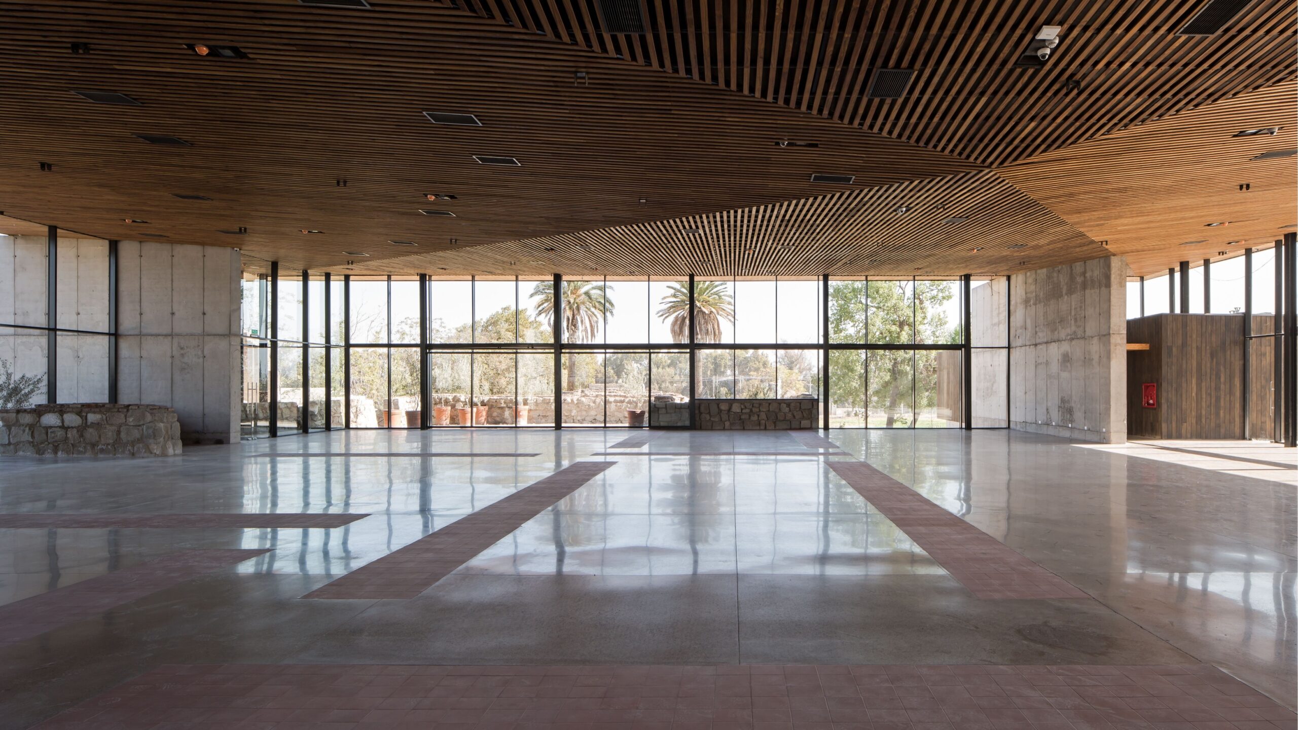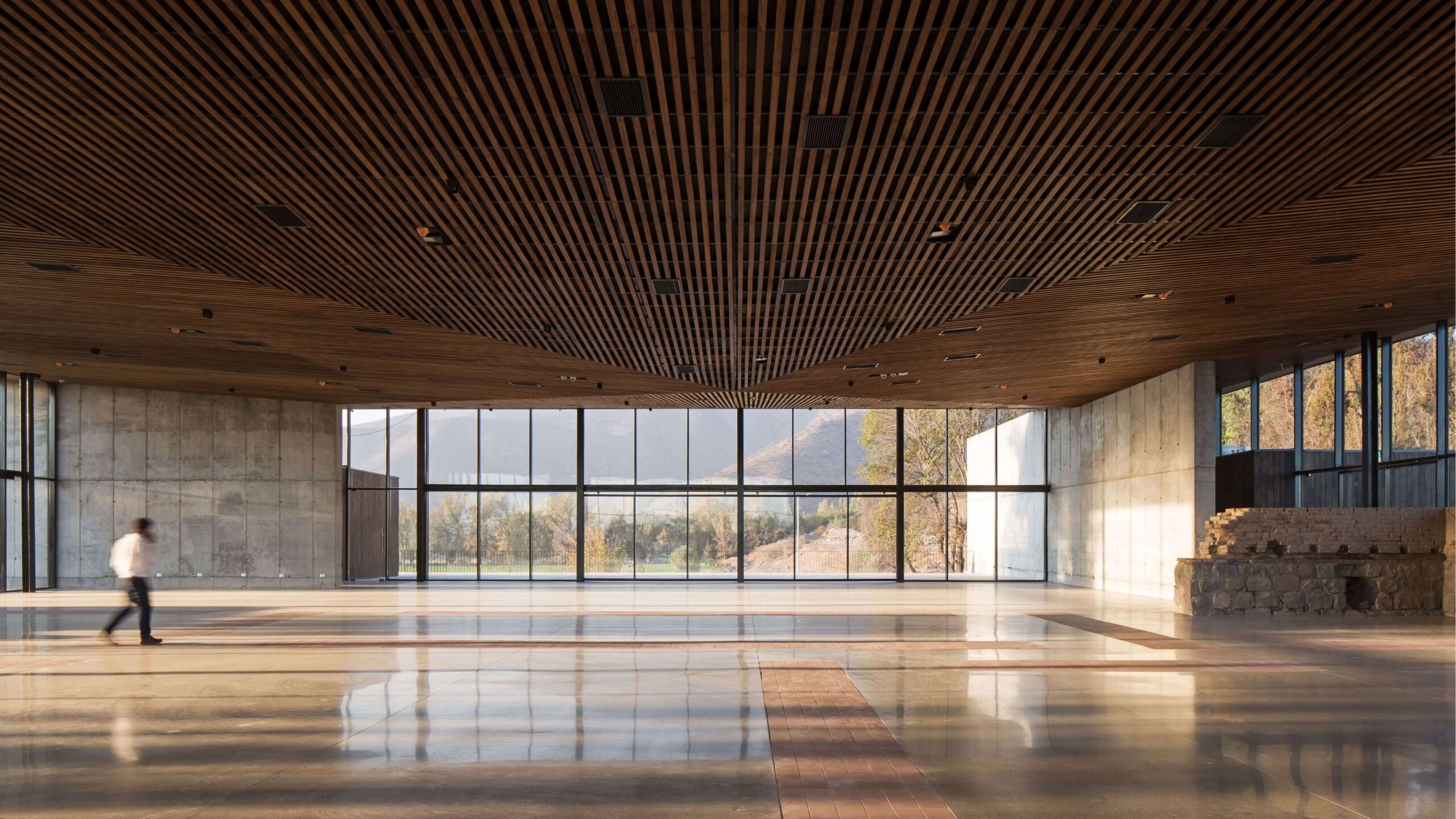 Grandes ventanales en 360° que permiten la conexión y expansión a terrazas y ruinas.