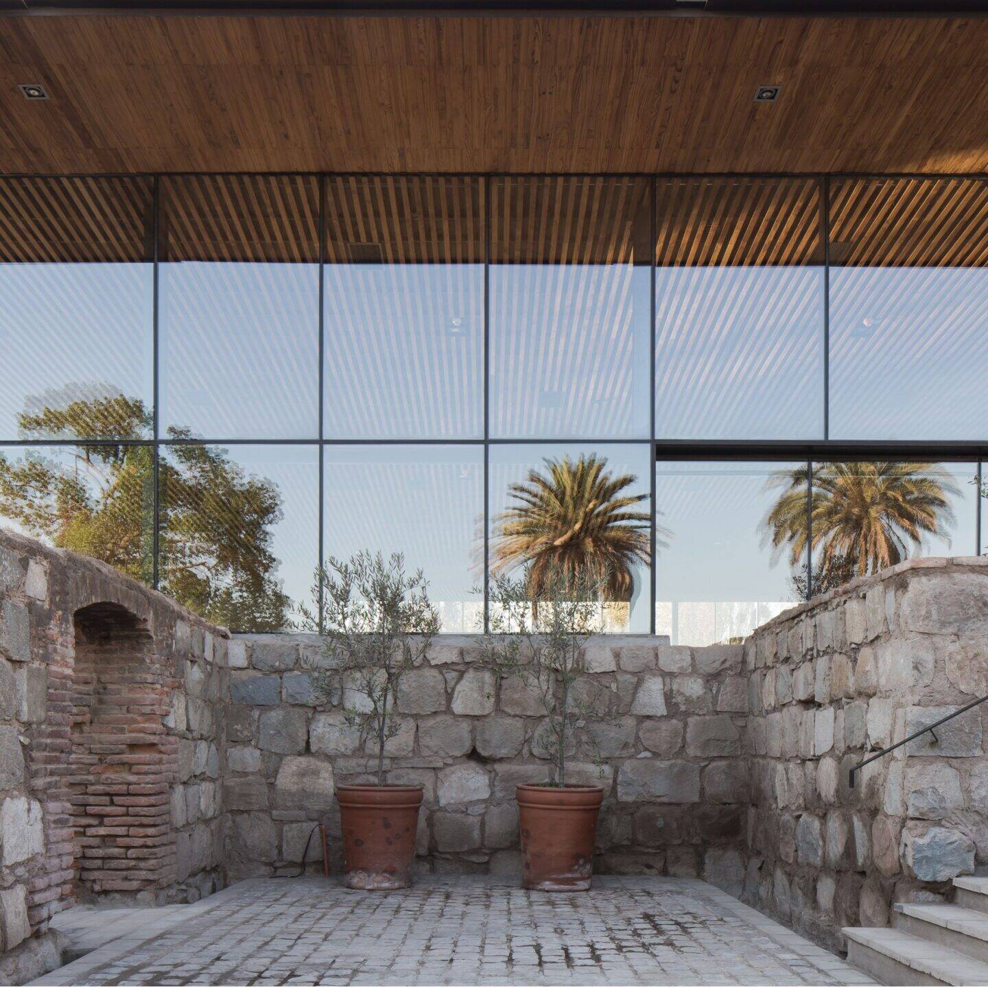 Entremuros se ubica en la histórica “Casona Pío Díaz de Valdés” levantada sobre una colina por la familia Carrera (el siglo XIX). Se restauraron los muros originales y hoy son telón de fondo de un lugar vanguardista, que revive el recuerdo de nuestra historia.